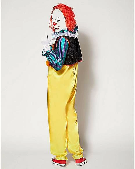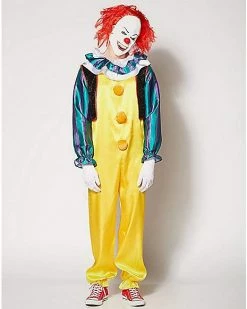 Kids love Halloween, but they might not like it as much with you wearing the officially licensed It Pennywise Adult Costume. This yellow, red, green and purple jumpsuit features neck ruffles and comes complete with white gloves and a character mask with an attached red wig. Freak out the children when you dress as the scariest clown known to man!