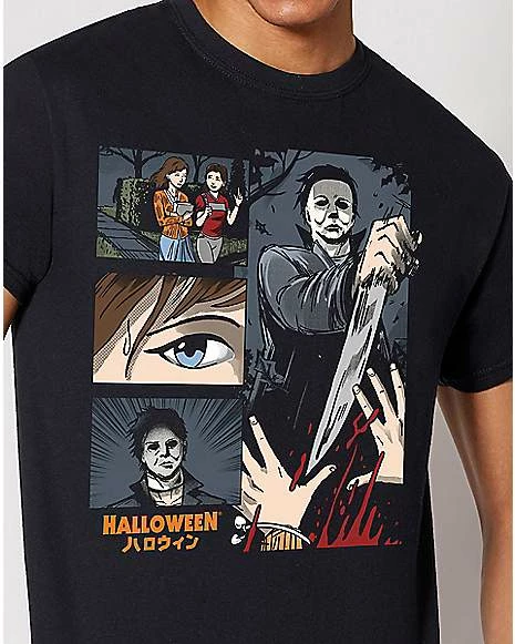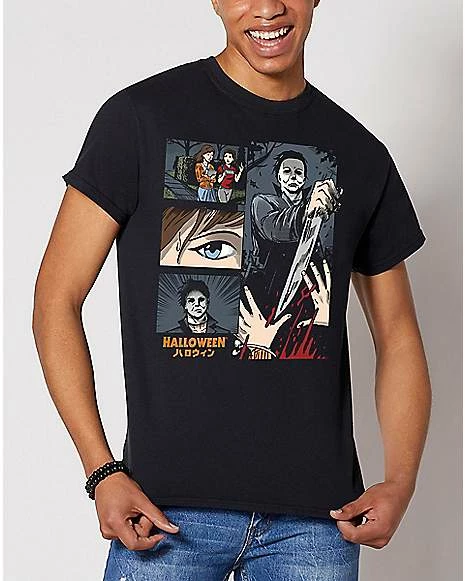 If you love anime and horror movies, you need this tee! This anime panel Michael Myers t shirt is perfect for any fan of the movie Halloween. It’s the perfect gear to make it spooky season any time you wear it.