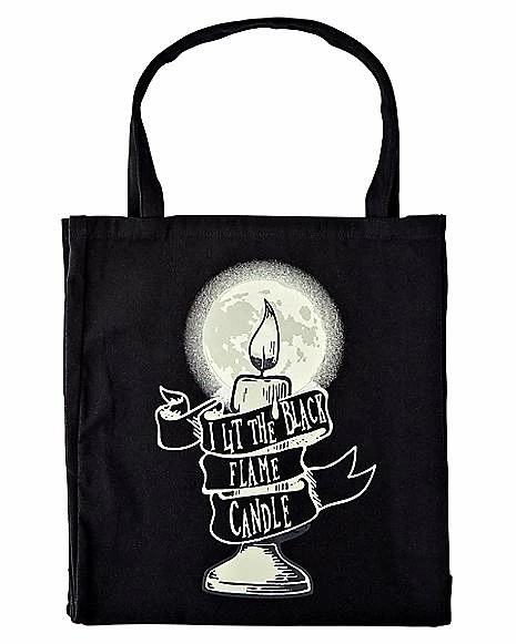 βSo letβs light the sucker and meet the old broads!β The infamous magical candle from Disneyβs Hocus Pocus returns in this officially licensed tote bag. Max makes the mistake of lighting the candle and bringing the Sanderson Sisters back from the deadβ¦ Will you make the same mistake? Carry around your spell books and potions in this stylized bag!