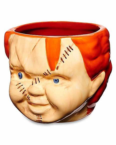 Drink your morning cup of joe and show off your love of horror with this Chucky head coffee mug! Featuring your favorite killer doll, this fun mug will be sure to liven up your day.