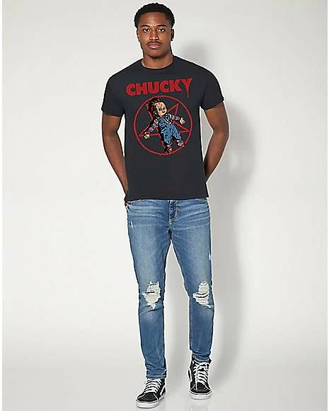 There’s no better way to show love for your friend ’til the end Chucky than with an officially licensed tee! Rock this stylish Chucky Pentagram T Shirt as part of your casual look and you’ll always be giving off some sick horror vibes.Β