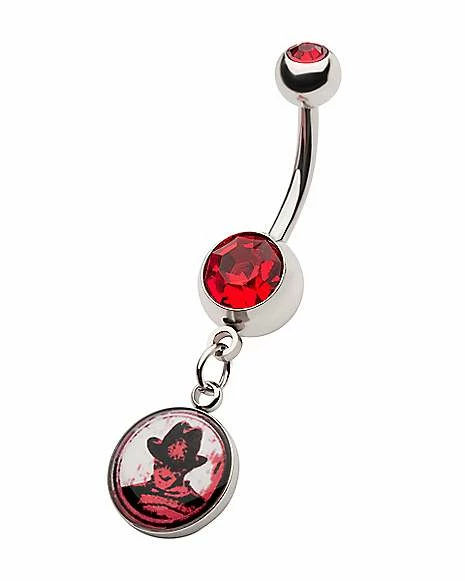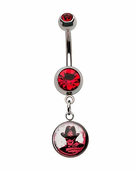 Best Pirce 𧨠CZ Freddy Krueger Dangle Belly Ring 14 Gauge – A Nightmare on Elm Street π
