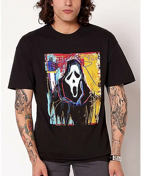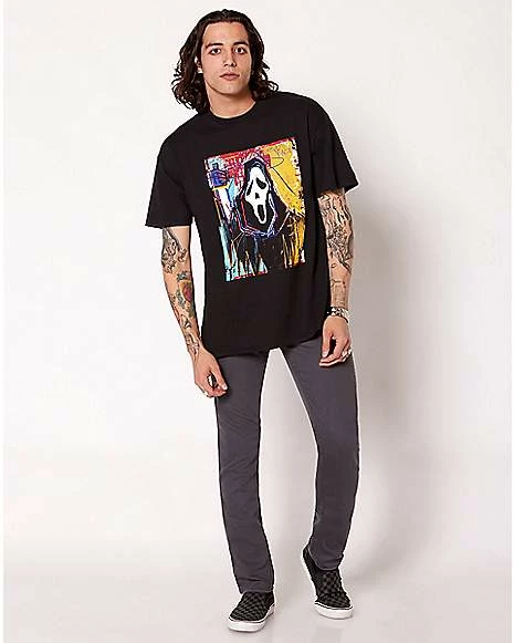 Show off horror movie style with this officialย Ghost Faceยฎ t shirt! This bold graphic tee is the perfect way to bring your love of horror with you in your everyday wardrobe.