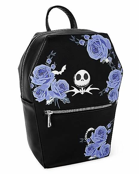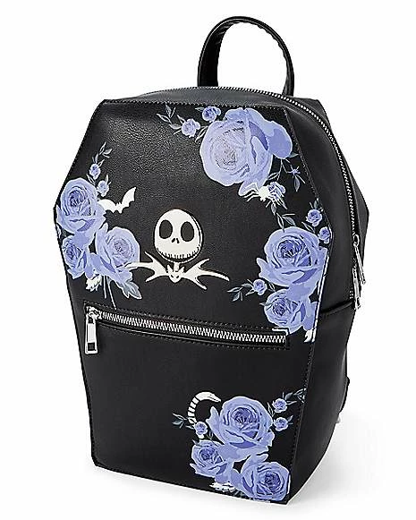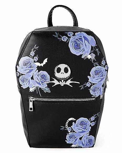 Accessorize your casual look with some spooky style when you carry all of your essentials in this officially licensed Floral Coffin Jack Skellington Backpack. Any fan of The Nightmare Before Christmas will adore wearing this backpack whether you’re at school, work, or staying with a friend. The outside zipper pocket and inside pocket provide plenty of space for any situation and the coffin shape gives it that perfect Halloween touch.Β
