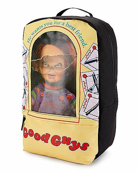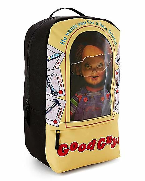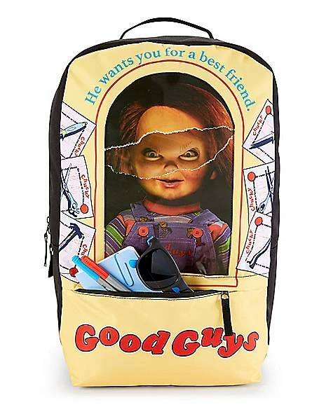 Roam the halls in killer style with this official Good Guys Chucky backpack! This roomy backpack features your favorite horror movie killer doll and has plenty of room for all your books and gear.