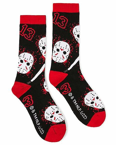 Add some killer style to your wardrobe when you get these officially licensed Jason Voorhees Mask Athletic Crew Socks. Represent your favorite horror icon and elevate your look!