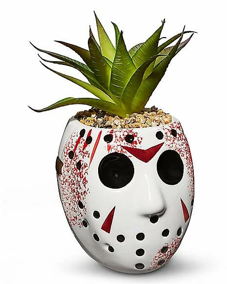 Nurture your love of dΓ©corΒ and horror films at the same time with this officially licensed Friday the 13th Jason Voorhees Mask Large Planter! Add a thrilling accent to any shelf, corner, or desk in your space with this adorably spooky planter.