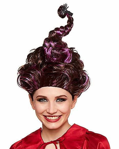 Complete your Sanderson Sister costume with this deluxe Mary wig! Show off her signature black and purple hair in this styled wig, which features her hair styled in a braided tail, tied off with a plastic spider. Put a spell on everyone you see and join your sisters for a Halloween night to remember!
