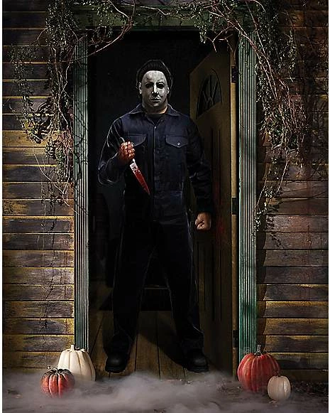 The Boogeyman is here for fear. Represent your favorite horror villain when you get this officially licensed Michael Myers Door Cover. Add this to your home dΓ©cor collection and scare everyone in town!