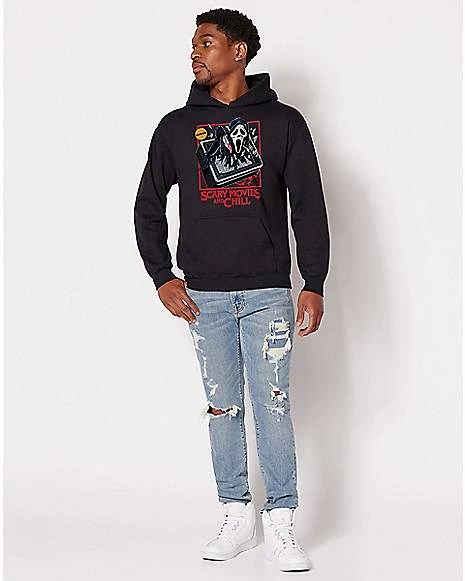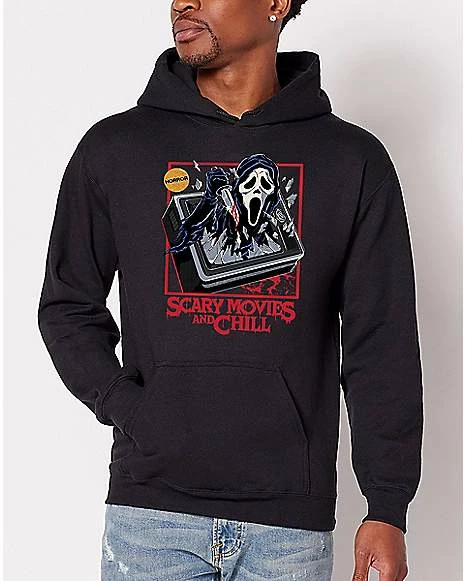 Movie nights are the best…as long as they are filled with scares and screams. Let everyone know how much you love horror movies when you rock this officially licensed Scary Movies and Chill Ghost Faceยฎ sweatshirt. Featuring the artwork of Steven Rhodes, this epic hoodie will definitely boost your style.