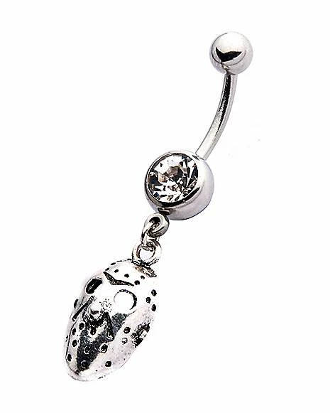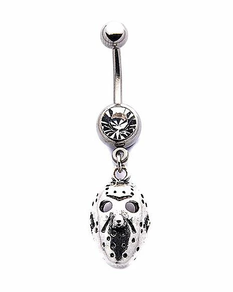 Discount β€οΈ Silvertone Jason Voorhees Mask Dangle Belly Ring 14 Gauge – Friday the 13th π