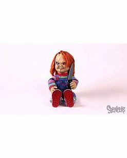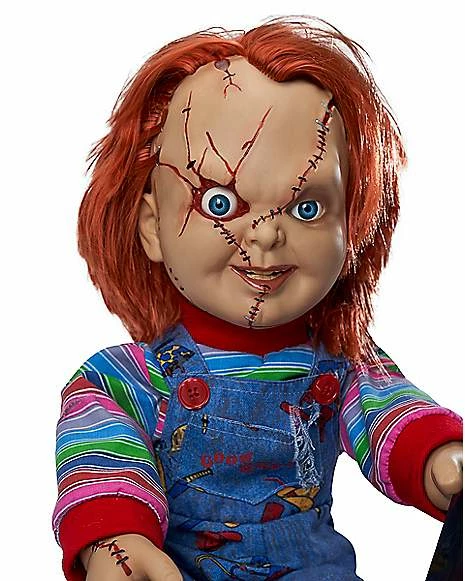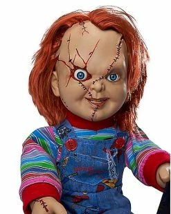 “A true classic never goes out of style.” This Talking Chucky Doll is a terrifying classic. Spewing psychotic phrases from “Bride of Chucky,” this deranged demon doll is horrifyingly detailed – right down to its stitched-up face, menacing grin and day-glow orange hair. Chucky makes for perfectly demented decor for any horror movie fan or Halloween scene as he delivers nine classic lines from the film, all while wielding his 9.5″ blade. Remember, “all he wants to do is play.” So “sit back and learn from the master.”