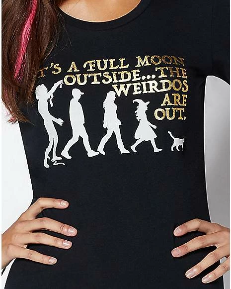 Itβs a full moon outside, and you know what that meansβ¦ Slip on this officially licensed t-shirt from Disneyβs Hocus Pocus and have a wickedly fun Halloween! Accented with golden text and featuring silhouettes of the whole gang of good guys, this black tee is the perfect addition to any Hocus Pocus fanβs wardrobe. Join Billy Butcherson, Thackery Binx, and the rest of the gang with this enchanting tee, available exclusively at Spirit Halloween!