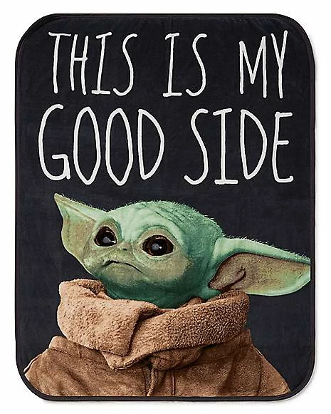Everyone has their good side in photos, and The Child is no different! At least, according to this blanket. This Grogu fleece blanket is perfect for any fan of The Mandalorian (especially if you only watch it to get to the scenes The Child is in)!