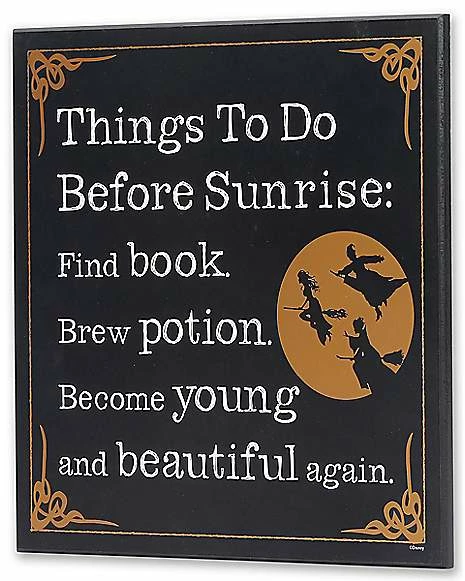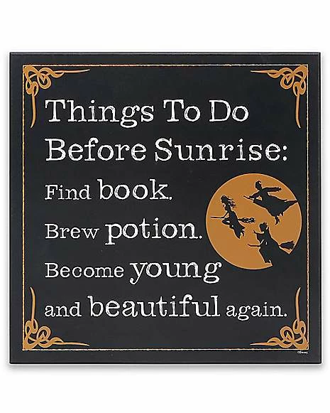 Get your home looking Halloween ready by adding this Hocus Pocus To Do List Sign to your home decor. This officially licensed sign features a Sanderson Sister to do list of all the things to do before the sun comes up and is perfect for showing your love for Hocus Pocus.Β